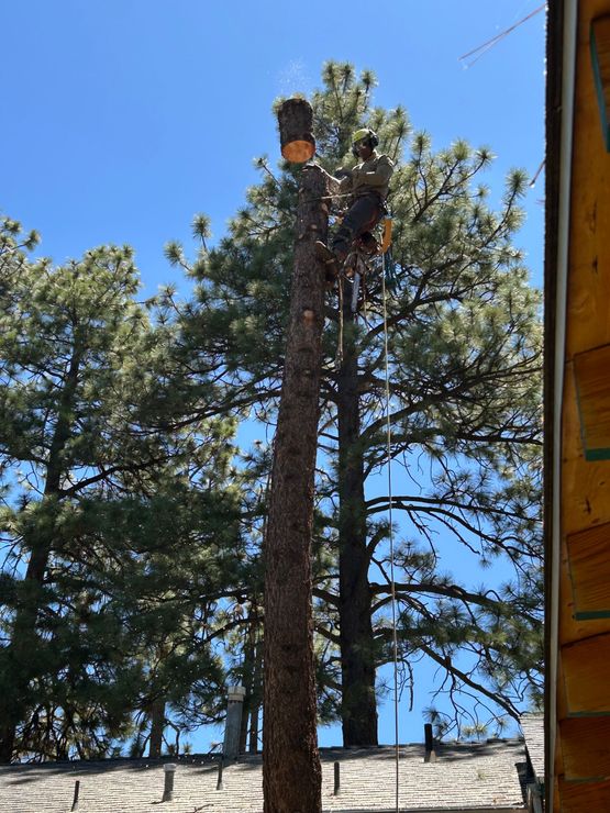 Ccf Services in Running Springs, CA. These trees are not just a fall hazard; they are highly flammable fuel for wildfires and attract pests like bark beetles. They also overcrowd your landscape, blocking essential sunlight. When you call our
